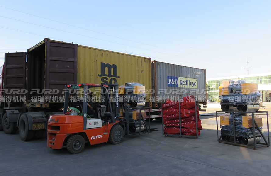福瑞得機(jī)械12臺(tái)手扶雙鋼輪壓路機(jī)打包裝柜出口澳大利亞