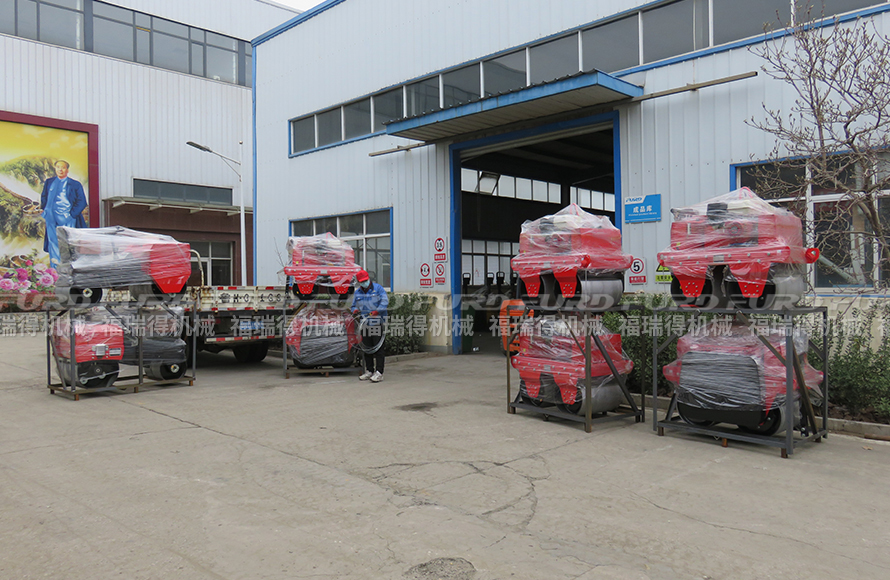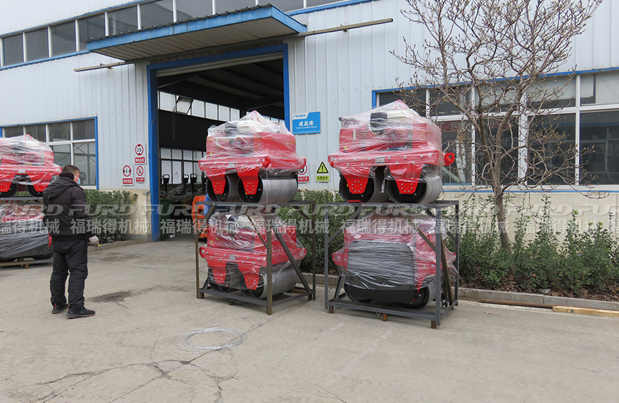 福瑞得8臺小型雙鋼輪壓路機打包裝車發(fā)往臨沂