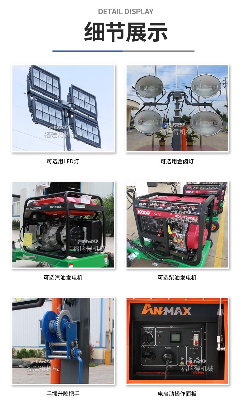 用于體育場館、機(jī)場、碼頭等大型公共場所,公路、鐵路、電力等緊急搶險現(xiàn)場,露天采礦現(xiàn)場,以及防洪防汛、搶險救災(zāi)現(xiàn)場等其他需要緊急備用光源、電源的場合。